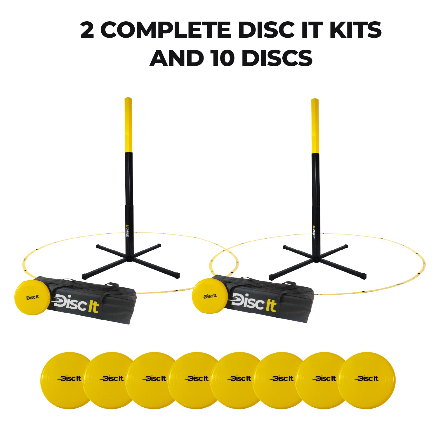 Bring the fast-paced excitement of Disc It to your program! Perfect for schools, colleges, and summer camps, this bundle is designed to get two groups playing at once while keeping the energy high. With 2 complete Disc It kits and 10 extra discs, you’ll have everything needed for PE classes, intramurals, recreation programs, or camp activities.