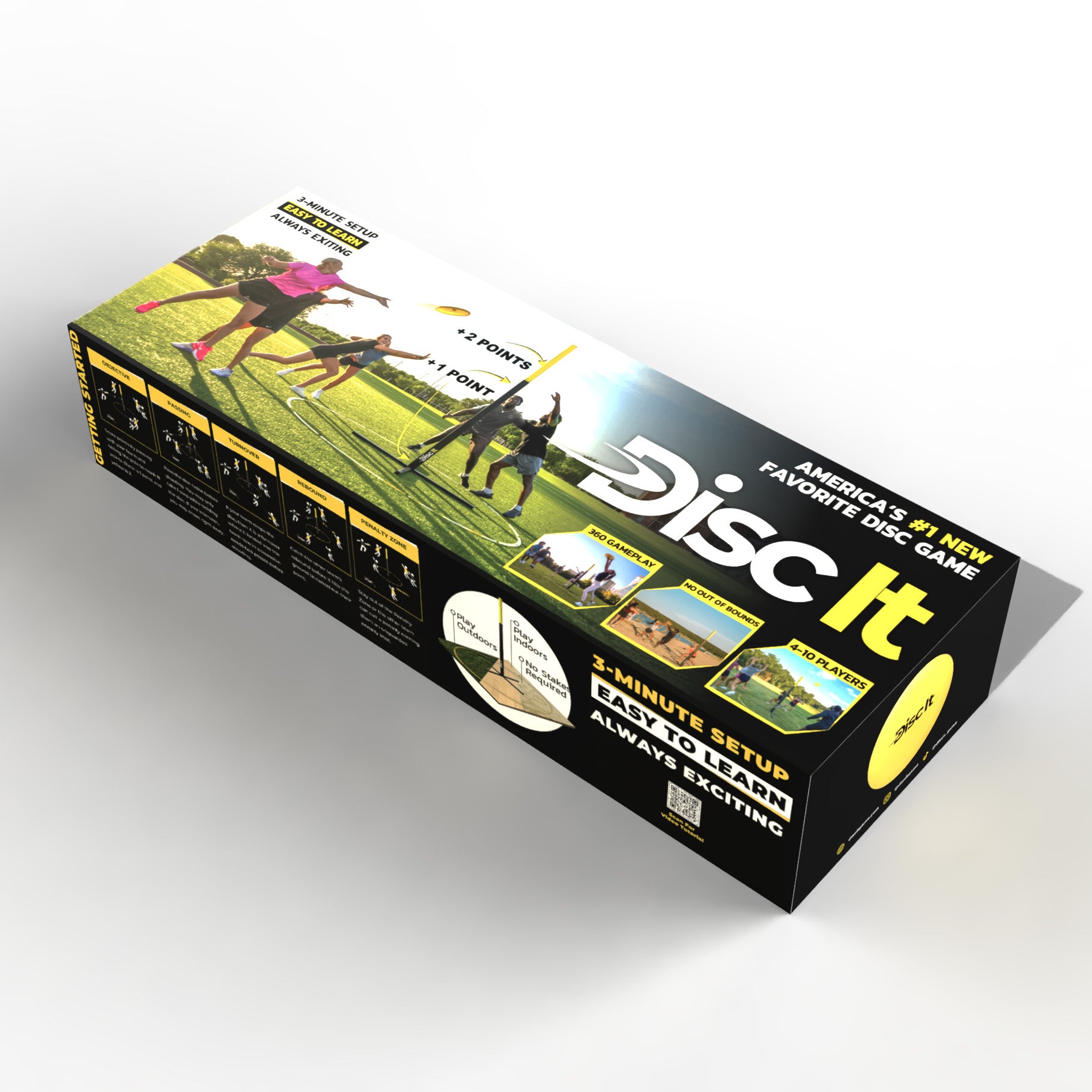 Take your yard games to the next level with Disc It! Perfect for 4–10 players, this fast-paced, high-energy disc game brings teamwork, strategy, and nonstop fun. Whether you’re playing on sand, grass, turf, a basketball gym or any flat surface, Disc It sets up in 2 minutes and keeps the excitement going for hours.